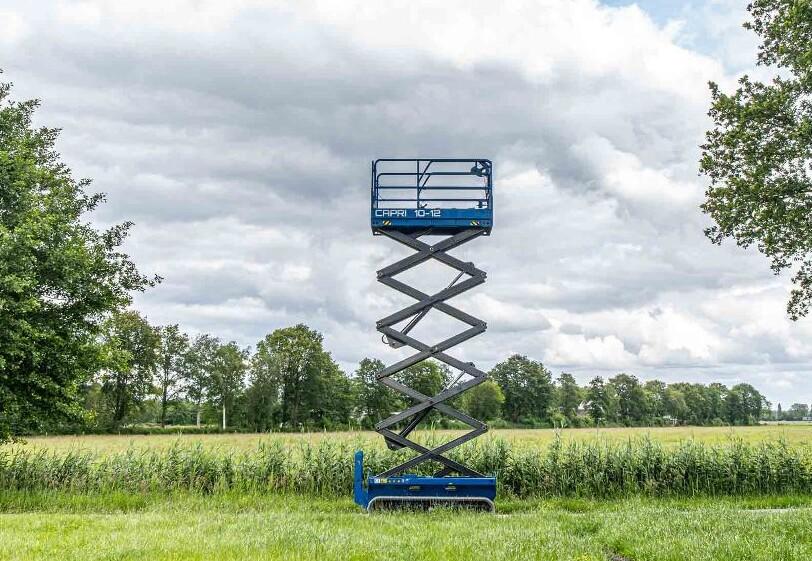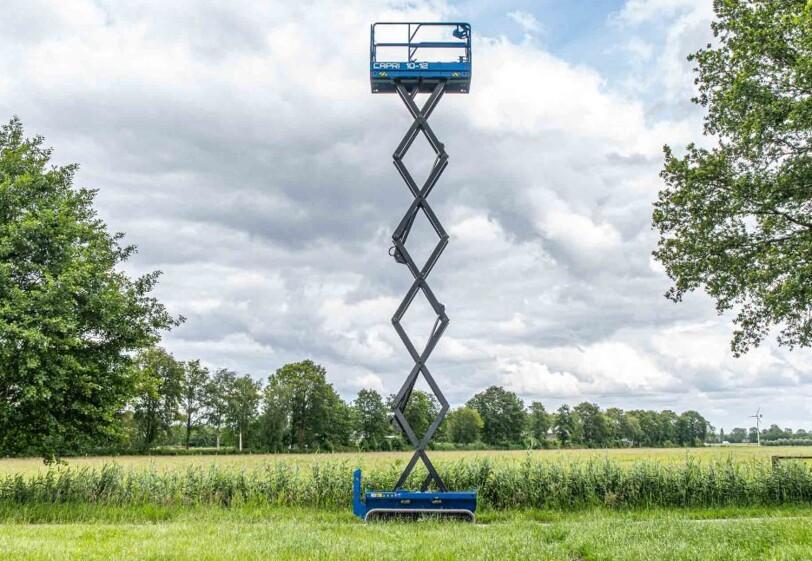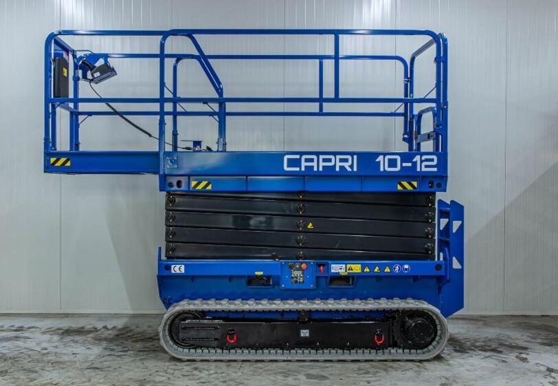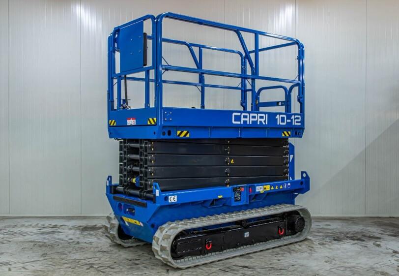 Capri hoogwerker 10-12: Volledig elektrische hoogwerker op rupsbanden, geschikt voor onverhard terrein.